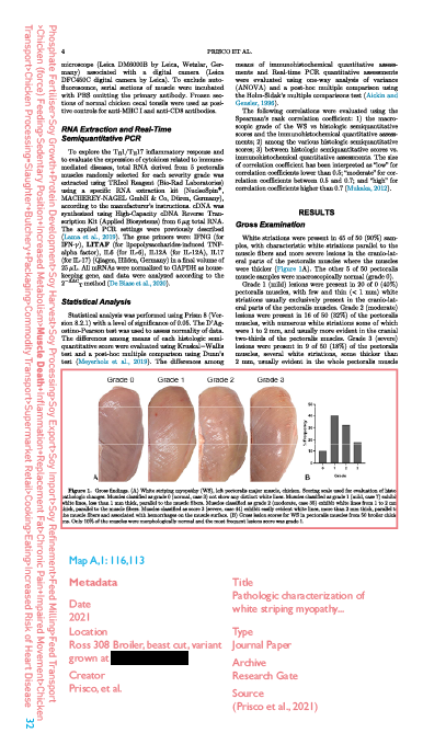 Prisco, Francesco, Davide De Biase, Giuseppe Piegari, Ilaria d’Aquino, Adriano Lama, Federica Comella, Raffaelina Mercogliano, Ludovico Dipineto, Serenella Papparella, and Orlando Paciello. 2021. “Pathologic Characterization of White Striping Myopathy in Broiler Chickens.” Poultry Science 100 (7): 101150. https://doi.org/10.1016/J.PSJ.2021.101150.